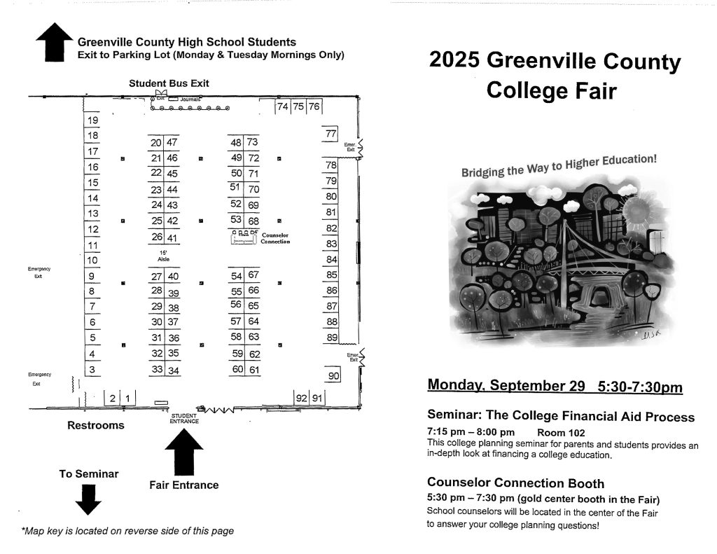 (Updated as of 9/28/2025 – all last minute college registrations are not on map. ) Below you can print or save the college fair map or scan the QR code to open it on your mobile device. Print or Save the PDF of the Map Scan to Open
